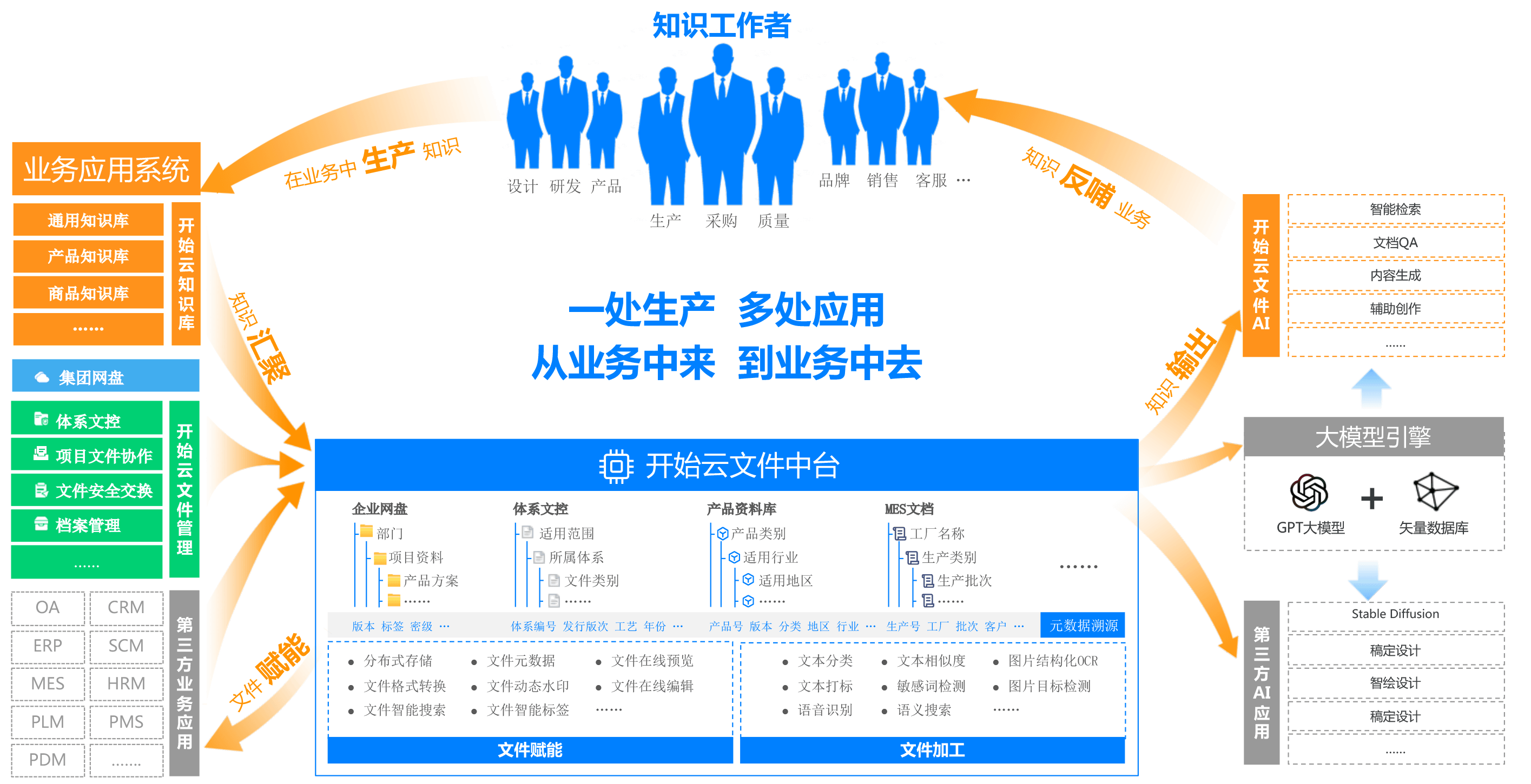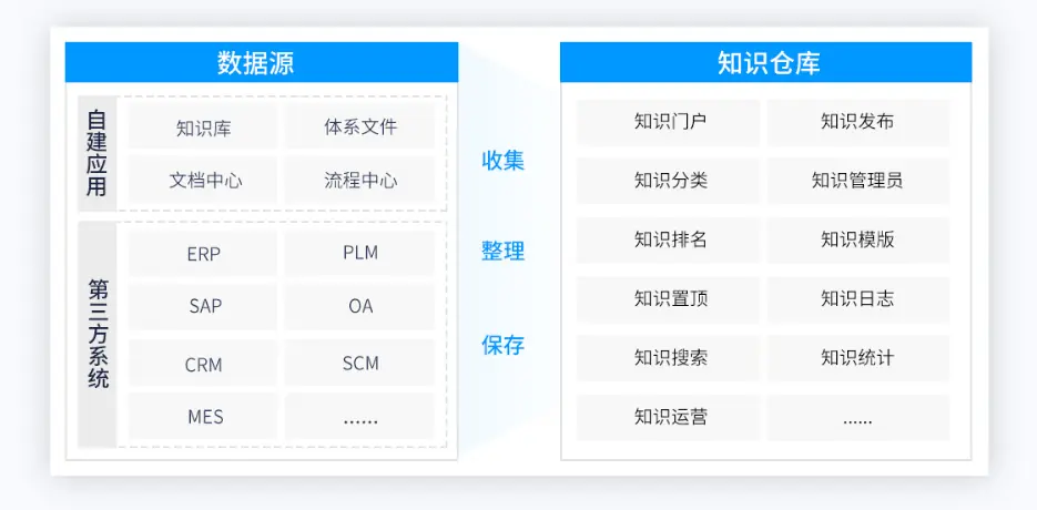 基于企业非结构数据聚合实现内部知识统一检索、展示、获取实现知识便捷的获取、分享。对外知识可以发布站点增强标准化知识的外部流通。