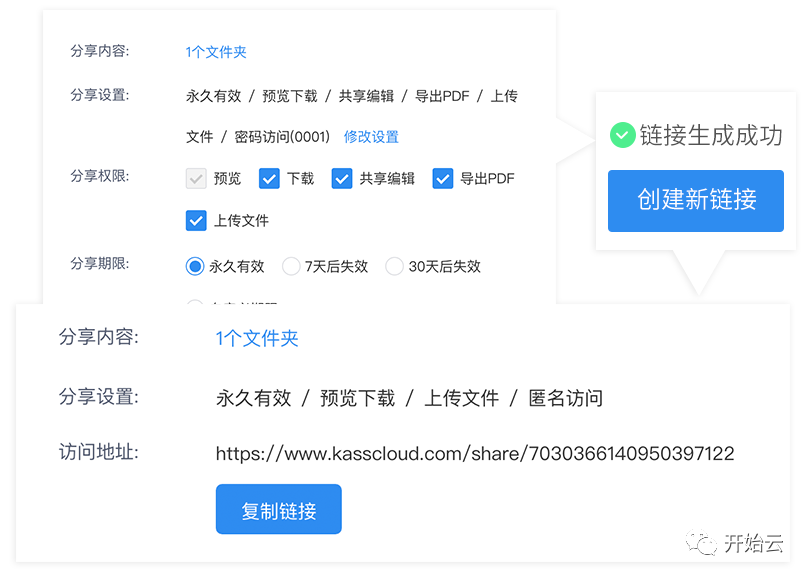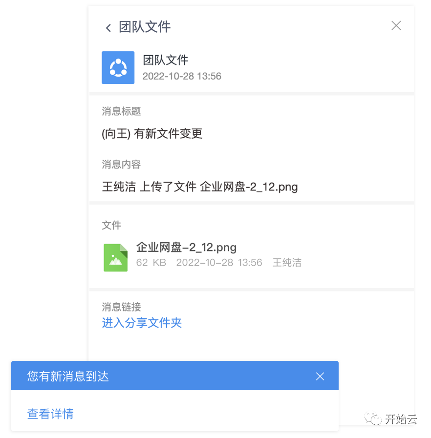 随时随地文件分享协同,让其更高效,便捷,一直是开始云针对企业网盘中团队文件协作的初心。具体核心功能体现在如下: