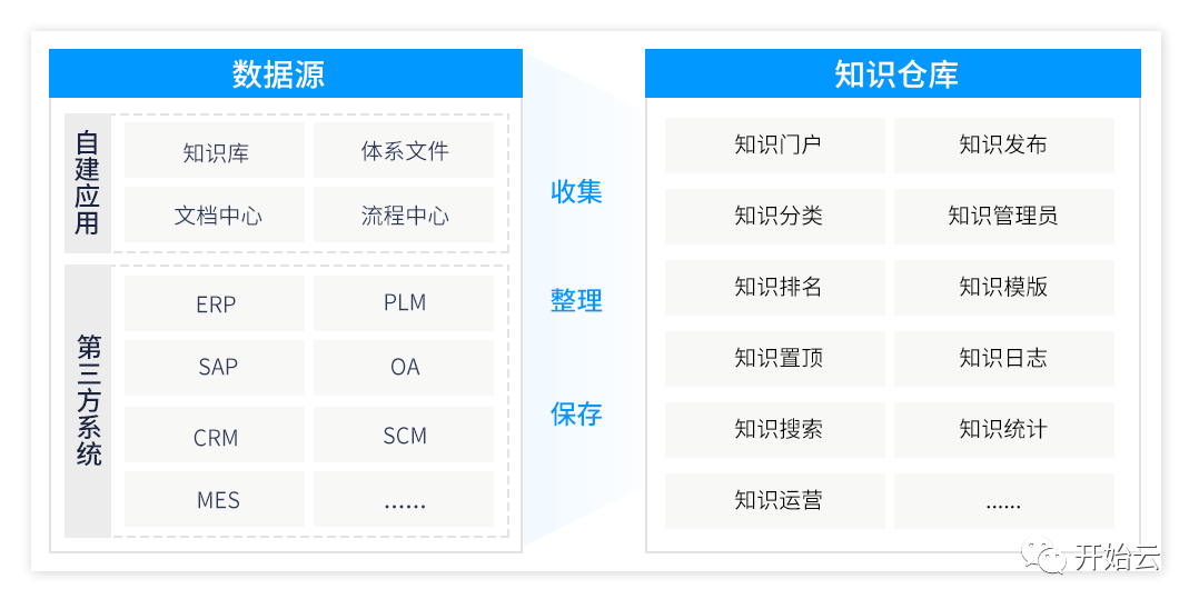 ●知识聚合:基于多信息系统的数据源统一捕获,通过企业非结构化知识资产的收集、长期保存形成知识仓库,利用知识处理技术构建具有领域特色的知识中台。