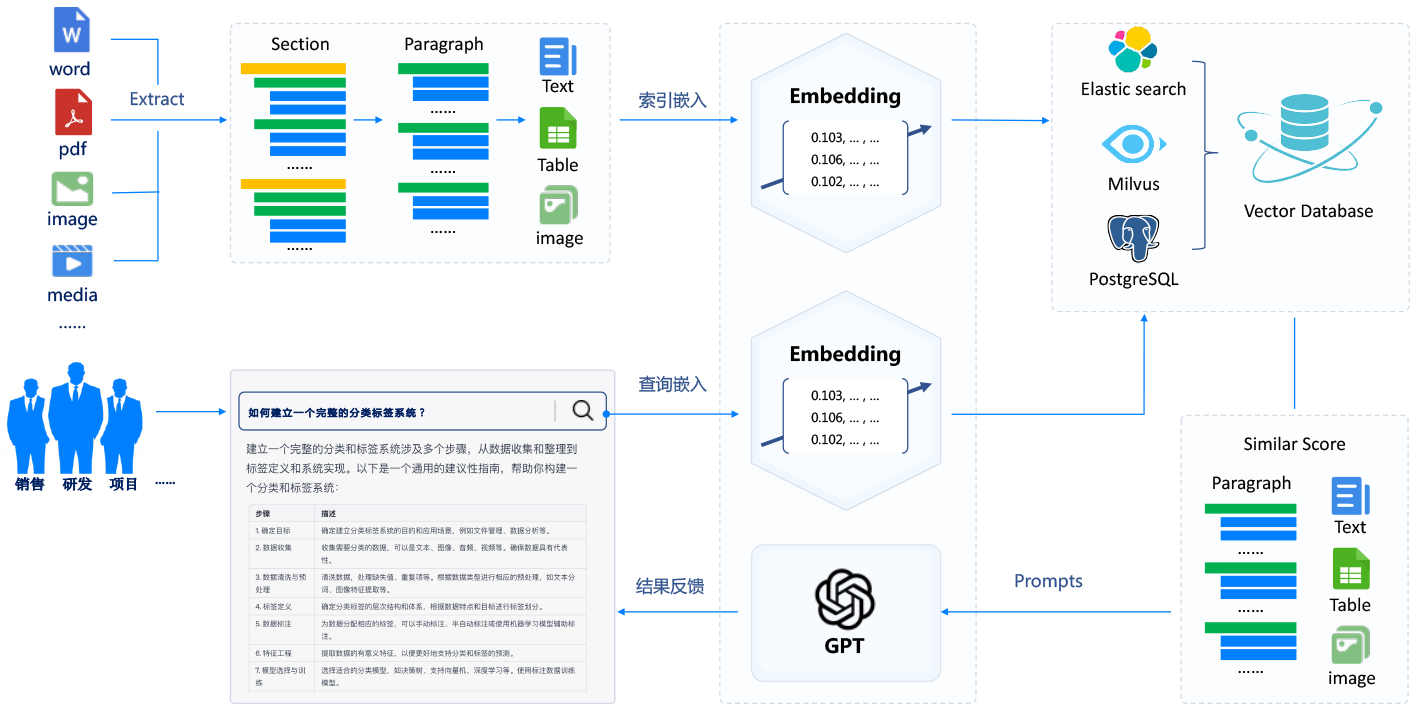 借助强大的大模型、OCR技术,精准处理文档、图片、音视频,提高搜索准确度,细致到段落级。
