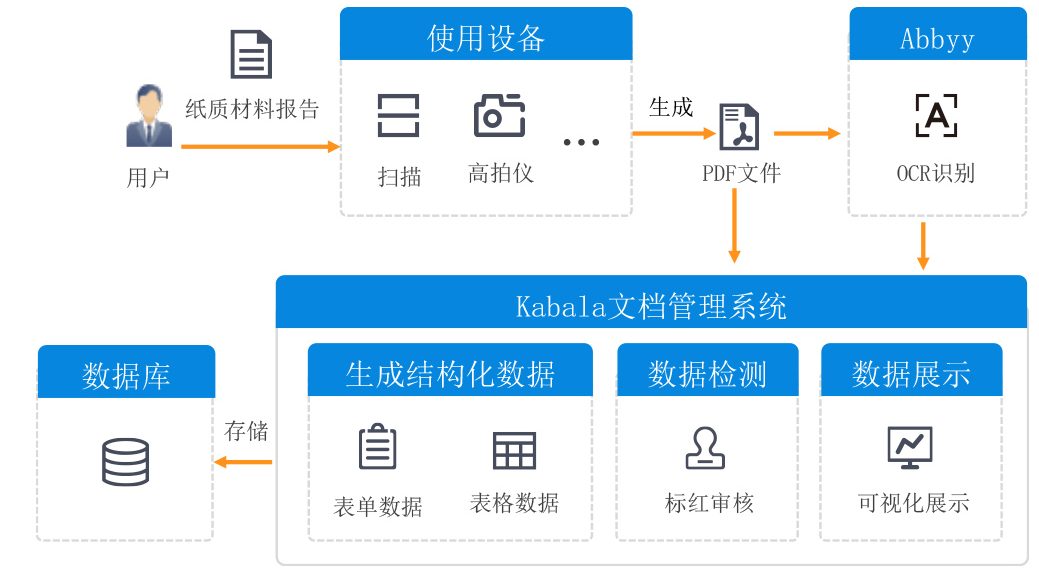 实现纸质文件的电子化开发和Abbyy对接的可视化界面,以方便用户对读取的数据的更改发送消息给大数据平台,通知大数据平台调用数据,实现无纸化办公,提高了工作效率。