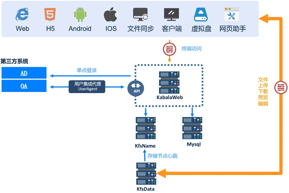 采用Kabala+KFS文件中间件,集中存储,应用服务、数据库服务、KFS存储服务等集中部署在一台linux服务器,windows服务器上部署文件转换服务。 在原有系统上面增加文件版本管理,文件分类,优化父分类无需分配权限,只分配子分类权限,用户可以查看子分类,文件水印,体系文件流程管理,实现各部门文件集中部署,统一管理。