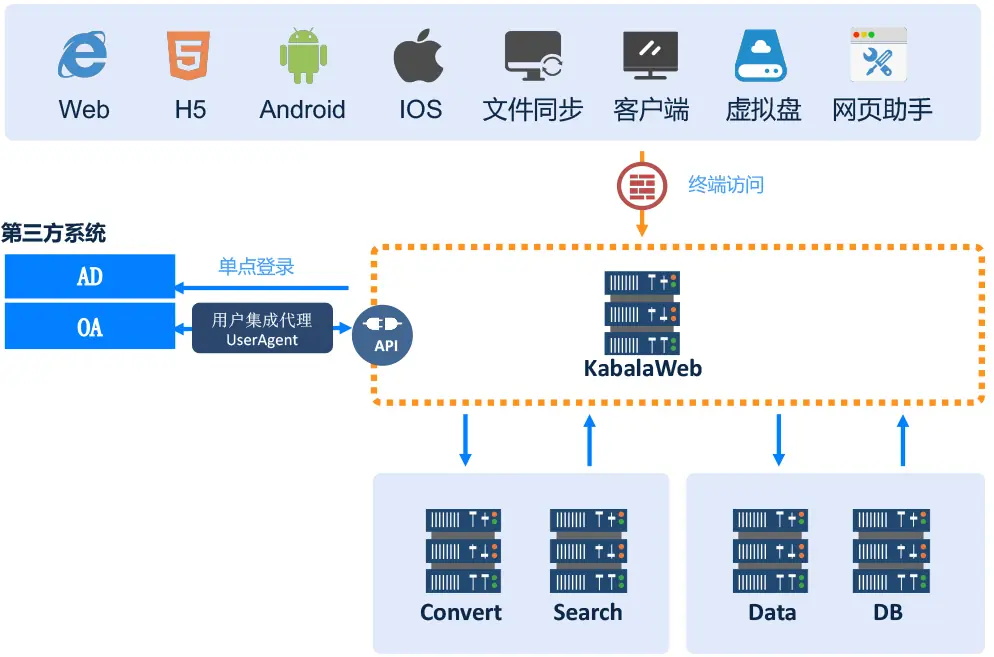 借助开始云搭建集团网盘,通过部署嵌入式文档管理应用(应用级PaaS)异地部署,异地跨机房部署,通过平台实现所有文档都可以经由Web浏览器和其他客户端找到并获得,并将不同等级的文档赋予不同权限的人。