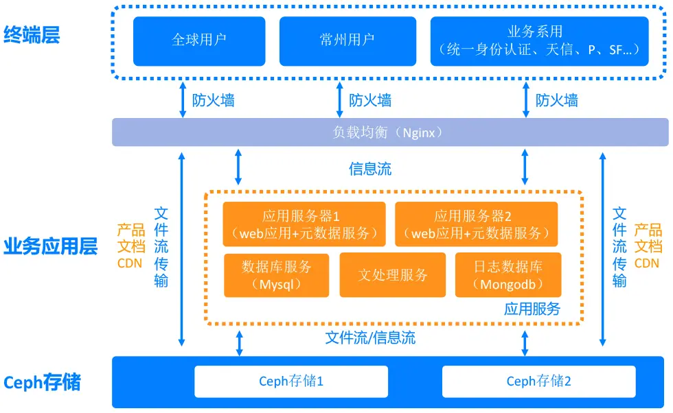 产品信息管理系统主要为完善目前线上管理产品信息、产品生命周期、产品文档等功能,用于内部、外部不同用户之间围绕产品制作、使用产品资料。与天合光能现有poeplesoft,同一身份认证,移动端,对象存储,预留接口集成,定期通过接口同步集成,整个系统主要分为内部用户、外部用户两大类,根据不同用户类型、角色对应系统不同使用权限。内部用户、销售人员作为内部员工使用系统现有账号体系。给与不同的角色不同的使用权限,自动同步更新数据使用数据只用用户数和组织架构信息。