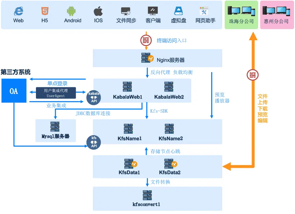 开始云为中京电子提供的分布式企业文档管理系统方案,将应用,元数据,存储分别进行分离分布式集群部署,在保证各个厂区管理各自的文件区域前提下,仍然整合整个公司的组织架构体系,保证中京电子能统筹监管各个分子公司的各项生产经营文件,也能满足每个分公司厂区的日常使用不会互相干扰。
